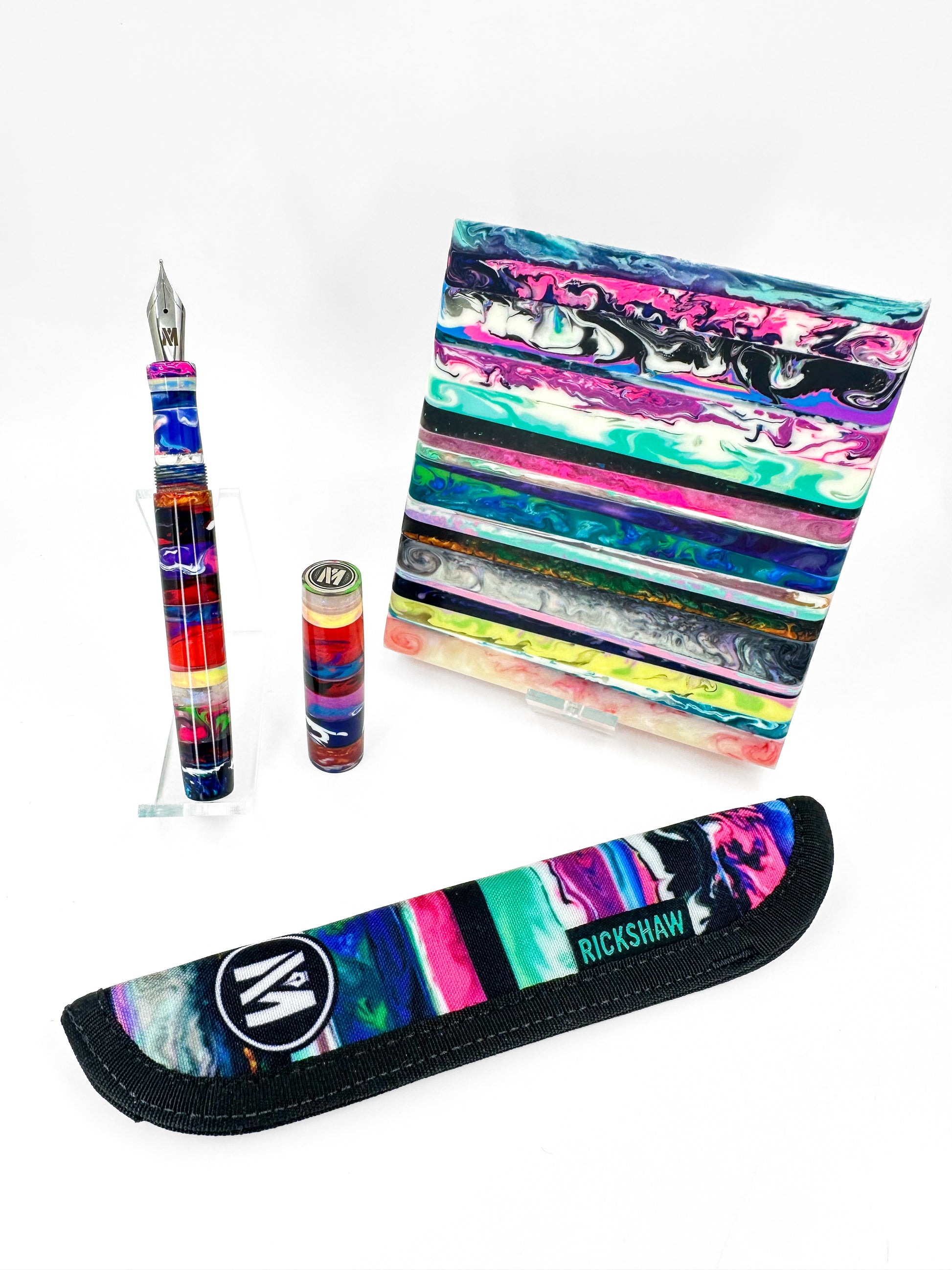 Each Stratified block takes over month to make and you can’t even really appreciate all of the intricacies of the layers until you hold the finished pen in your hands. Each of these comes with a custom Stratified pen sleeve from Rickshaw Bags.